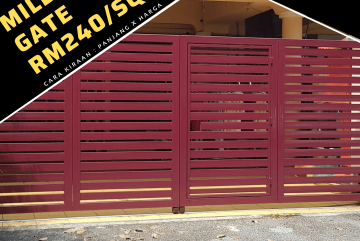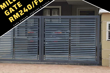 Standard Folding Gate size 16 Feet Length + Mild Steel Frame w Aluminum panel + Includes material, delivery, installation & 1yr warranty - 50% Deposit up front, Delivery in 2 - 3 weeks - Coverage Area all over Klang Valley - Whatsapp 0173319063 for enquiry